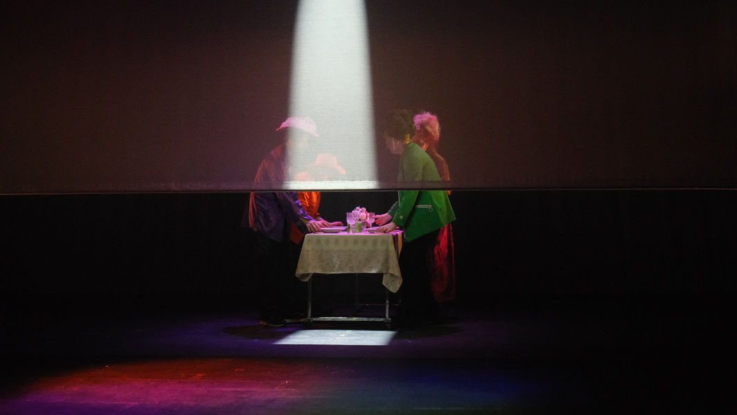 I wanted extreme colour blocking in the costumes and lighting and abstract shapes, which was incorporated with the hats.