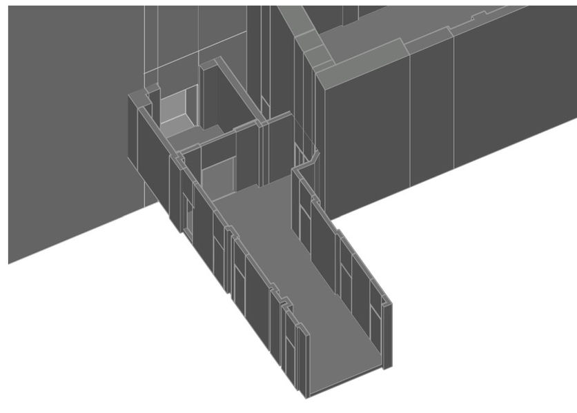 I also decided that I wanted to make the foyer and atrium at RCSSD as well as I was incorporating these spaces into my design. These were made from only a ground plan and measurements I took while in the space. I created the elevations and 3D drawings