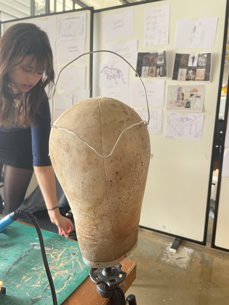To make these I soldered metal rods together. We wanted the hierarchy within the group to be shown through the style of their headpieces.